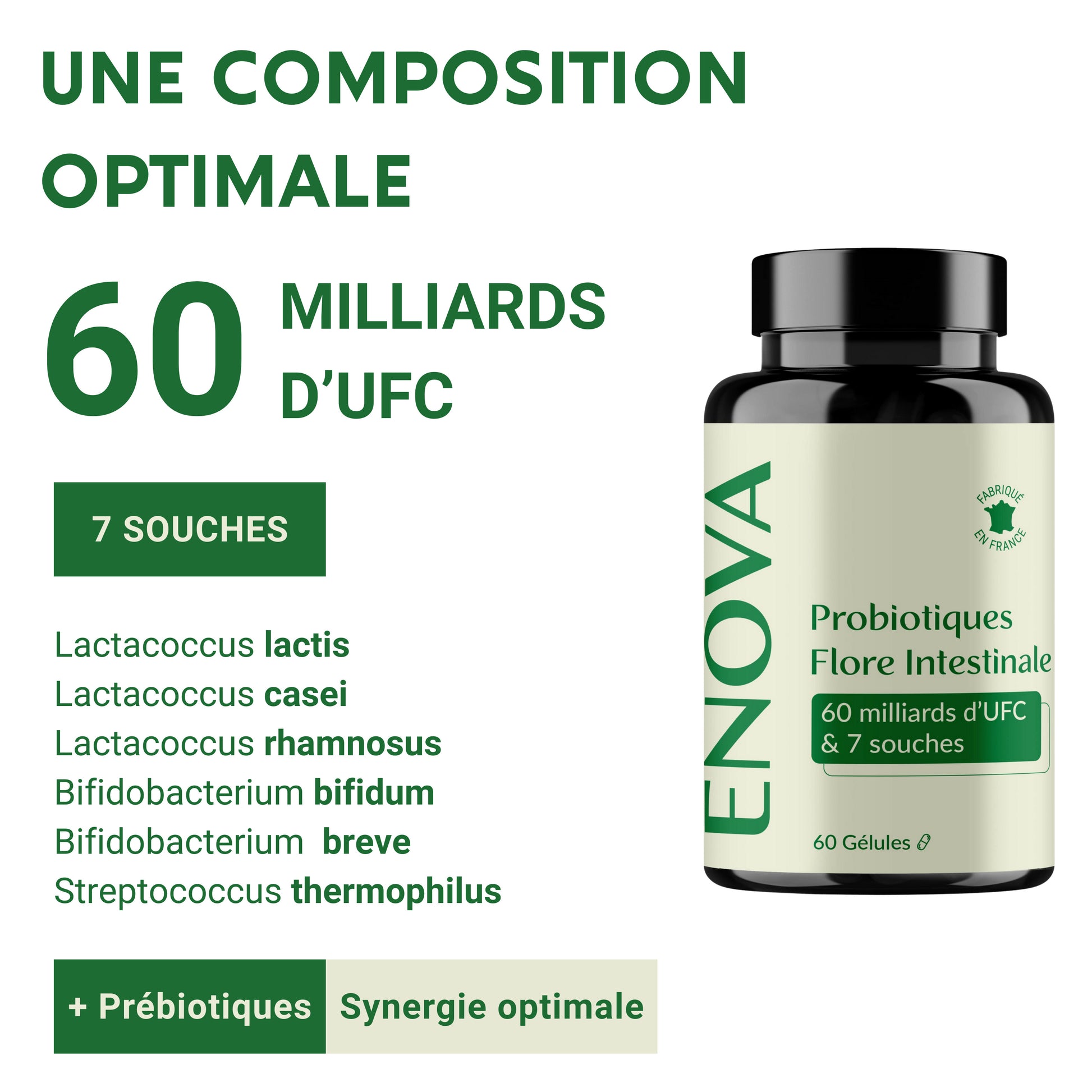 Notre formule associe 60 milliards d’UFC issus de 7 souches de lactobacilles et bifidobactéries soigneusement sélectionnées. Présentées en gélules gastro-résistantes, elles assurent une meilleure survie des micro-organismes jusqu’à l’intestin. Fabriqué en France, ce complément s’intègre facilement à votre routine de bien-être.